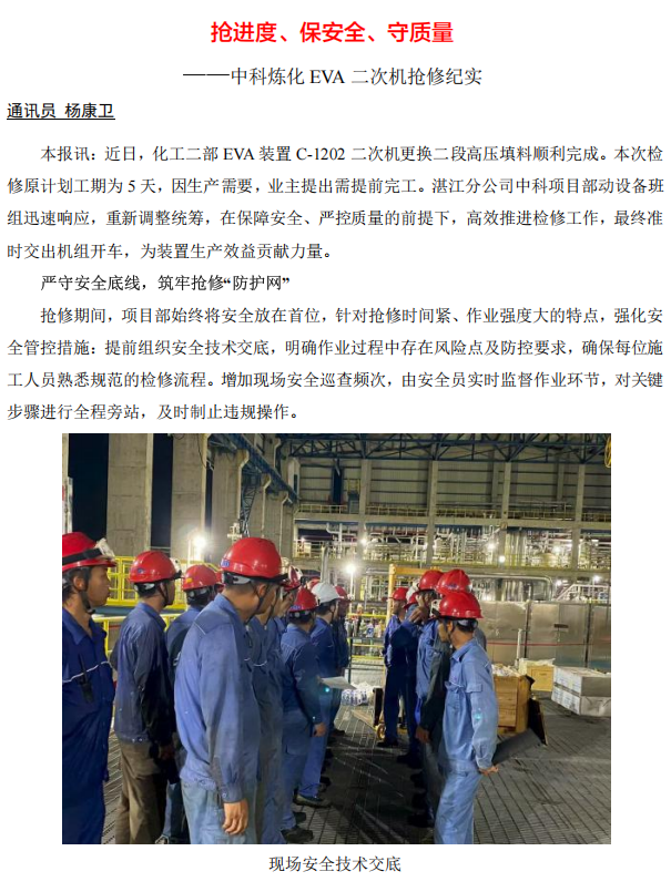 中科煉化 EVA 二次機(jī)搶修紀(jì)實(shí)